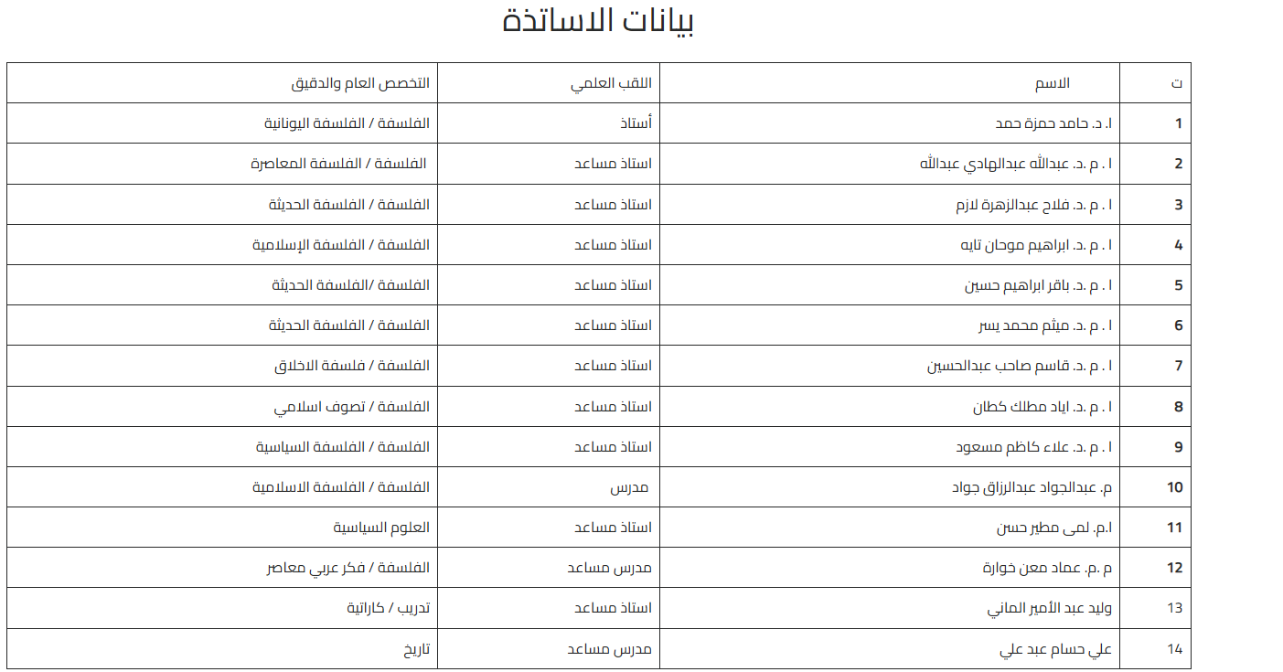 احصائيات قسم الفلسفة للعام الدراسي 2021-2022