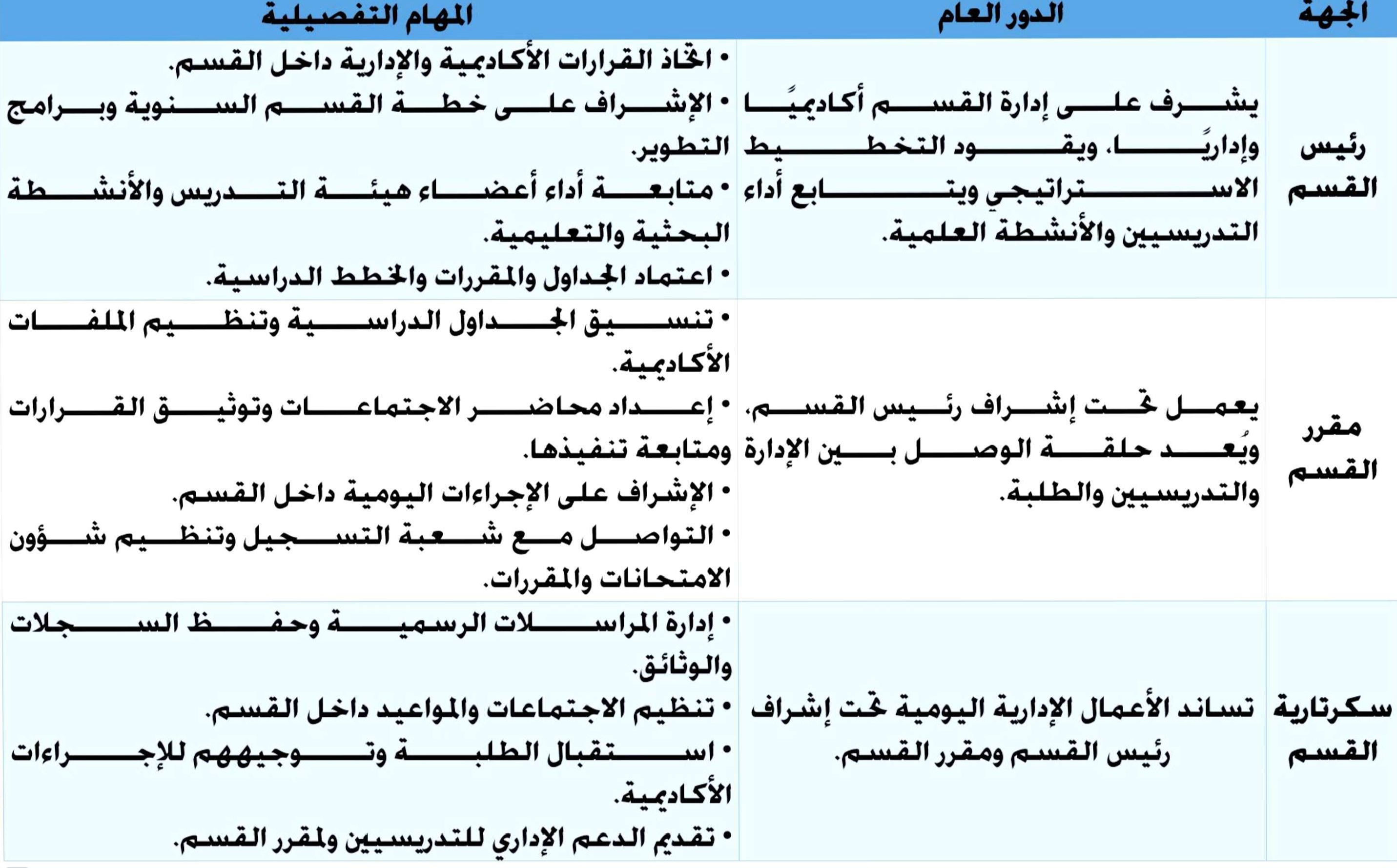 الهيكل الوظيفي ومهام كل شيء داخل القسم