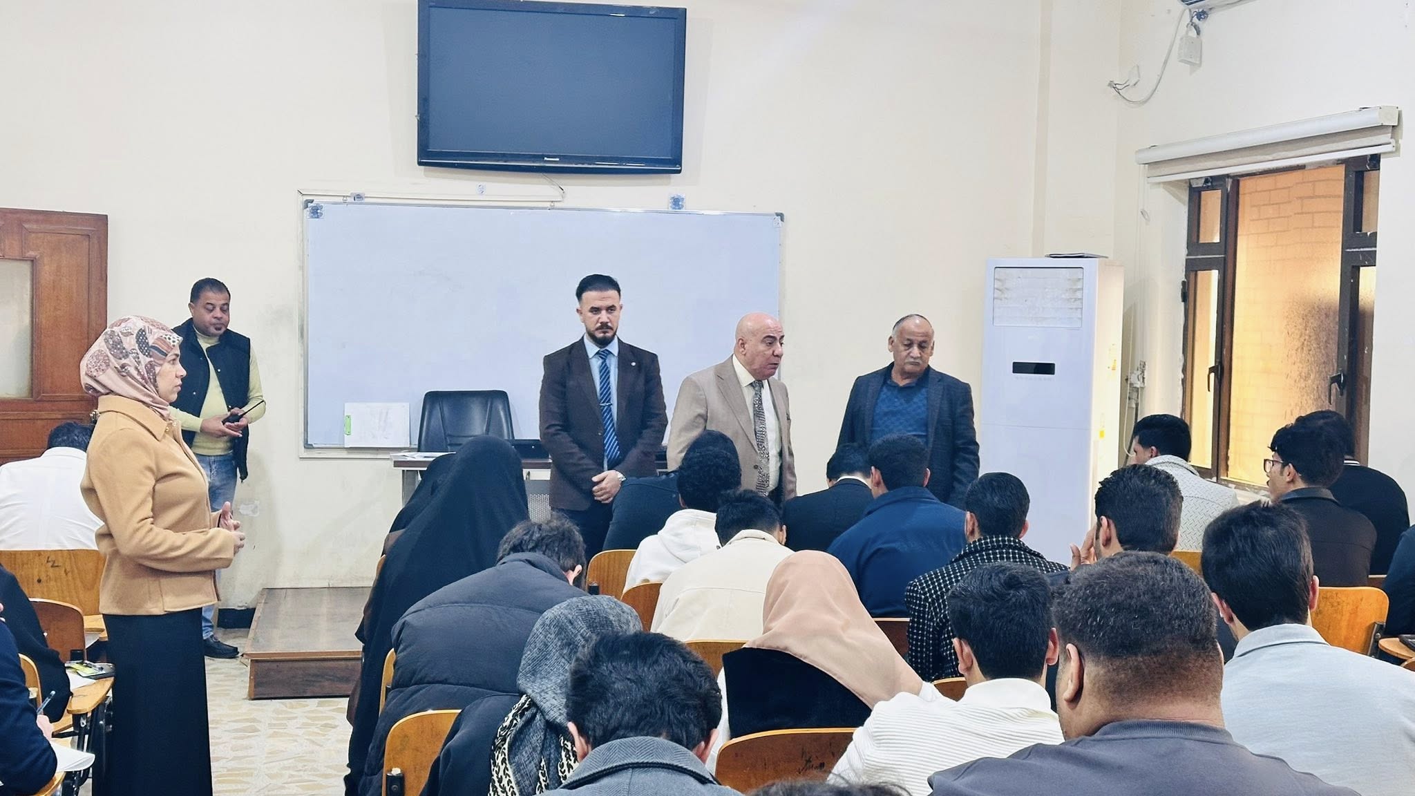 تابع عميد كلية الإدارة والاقتصاد الأستاذ الدكتور أحمد عبد الله سلمان الوائلي سير الامتحانات النهائية للكورس الأول للعام الدراسي الحالي لطلبة الدراسات الأولية والعليا، ضمن جولة تفقدية شملت القاعات الامتحانية وآليات التنظيم والالتزام بالتعليمات الوزارية. وأكد السيد العميد أهمية تهيئة بيئة امتحانية ملائمة تحقق العدالة والشفافية، مثنيًا على جهود اللجان الامتحانية والملاكات التدريسية والإدارية، ومتمنيًا للطلبة التوفيق والنجاح.