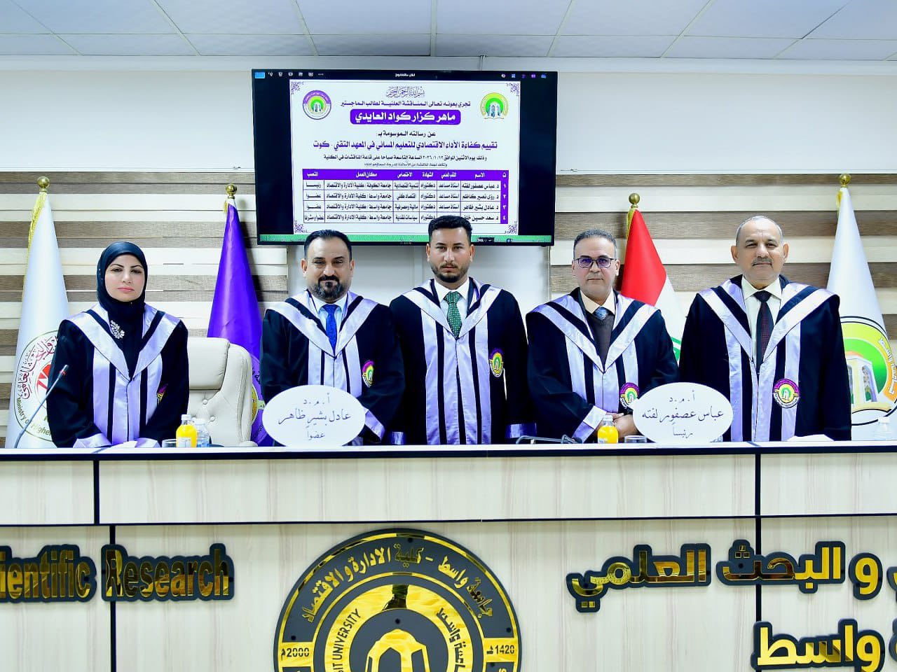 كلية الإدارة والاقتصاد تناقش رسالة ماجستير عن تقييم كفاءة الأداء الاقتصادي للتعليم المسائي في المعهد التقني–كوت