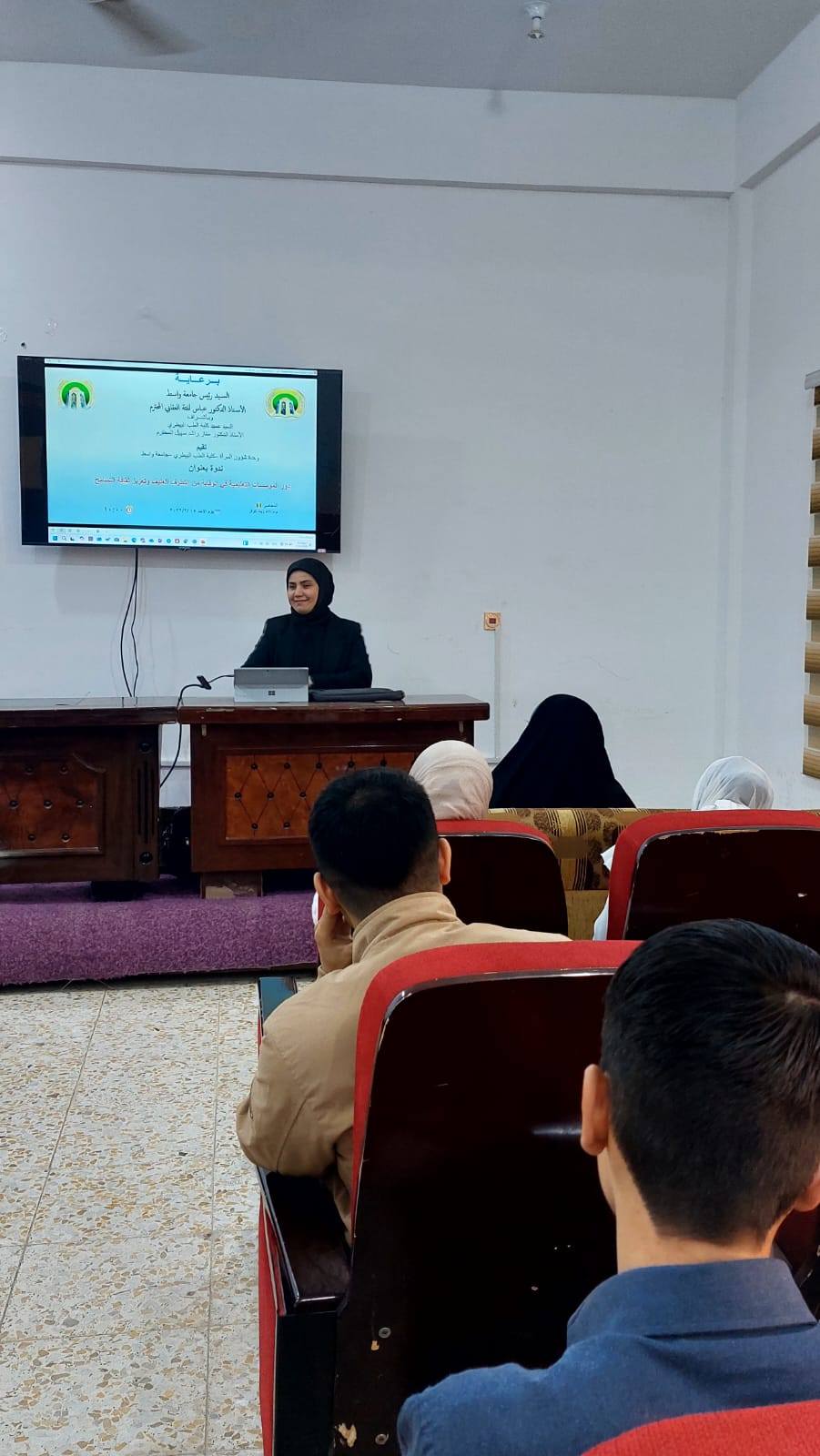 اقامت وحدة شؤون المرأة في كلية الطب البيطري /جامعة واسط ندوة بعنوان(دور المؤسسات التعليمية في الوقاية من التطرف العنيف وتعزيز ثقافة التسامح) القتها ( م.م الاء زياد كوكز ) وذاك يوم الاحد الموافق ٢٠٢٦/٢/١٥ بحضور عدد من طلبة وموظفي الكلية .