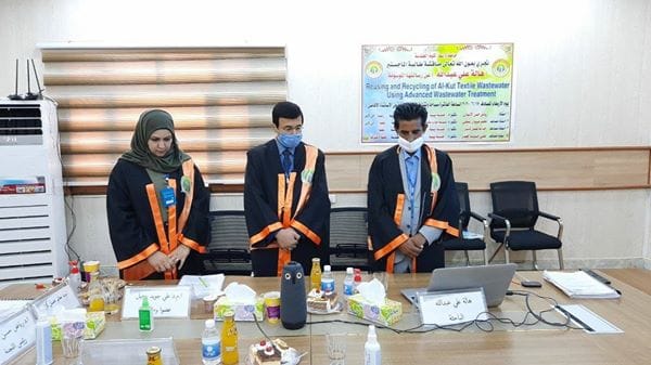ناقشت كلية الهندسة بجامعة واسط رسالة الماجستير الموسومة (( أعادة استخدام وتدوير مياه الصرف الصناعي لمعمل نسيج الكوت بأستخدام معالجة متقدمة لمياه الصرف)) .